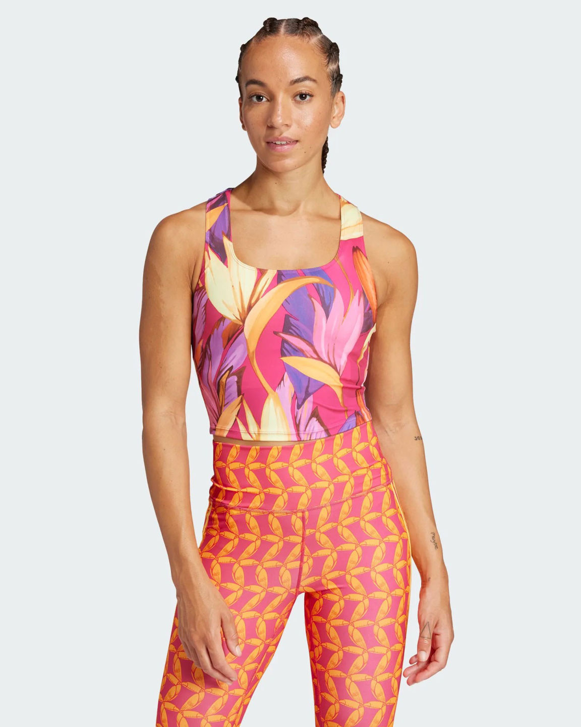 Questa canotta Adidas combina le inconfondibili vibrazioni tropicali di FARM RIO con stampe animalier e ikat per un look esotico ispirato alla bellezza del deserto. La vestibilità aderente e il taglio olimpionico sulla schiena assicurano la massima libertà di movimento durante le sessioni cardio o gli allenamenti con i pesi. La tecnologia CLIMACOOL allontana l'umidità dalla pelle per mantenerla fresca e asciutta. CLIMACOOL garantisce un'ottima gestione dell'umidità grazie ai materiali progettati appositamente: le fibre ad asciugatura rapida assicurano una sensazione di freschezza costante.