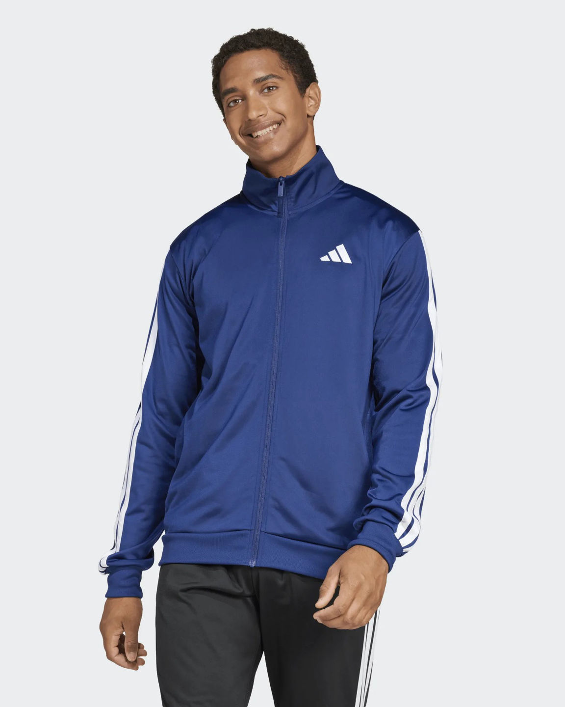 ADIDAS - FELPA UOMO FULL ZIP3S DAYREADY TRACKTOP BLU CON BANDE BIANCHE -JI8817