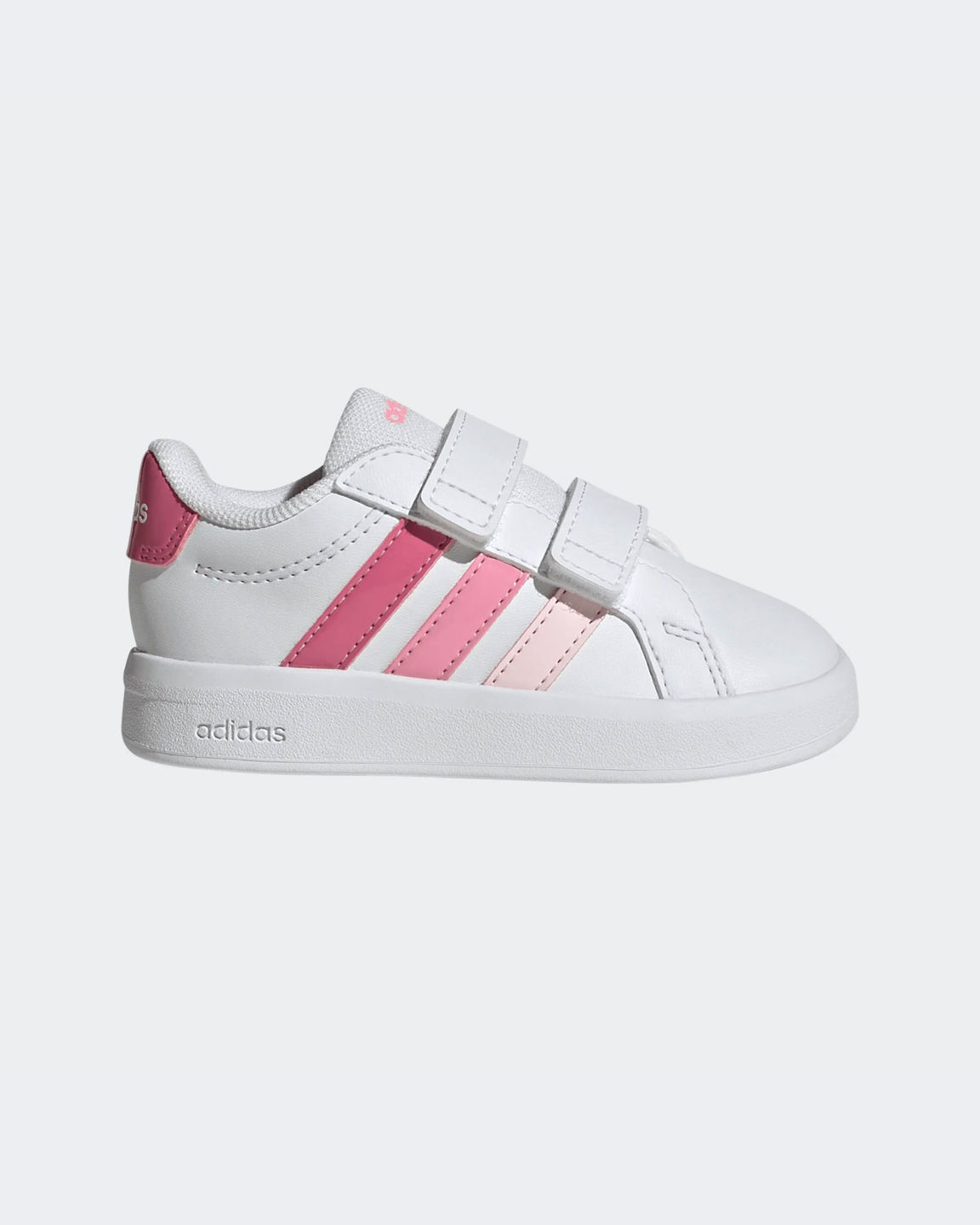 Le Scarpe Grand Court 3.0, un classico delle sneaker adidas ridisegnate per i più piccoli, offrono uno stile senza tempo ai più piccoli avventurieri grazie alle chiusure a strappo regolabili che facilitano il fissaggio delle scarpe da parte dei genitori.