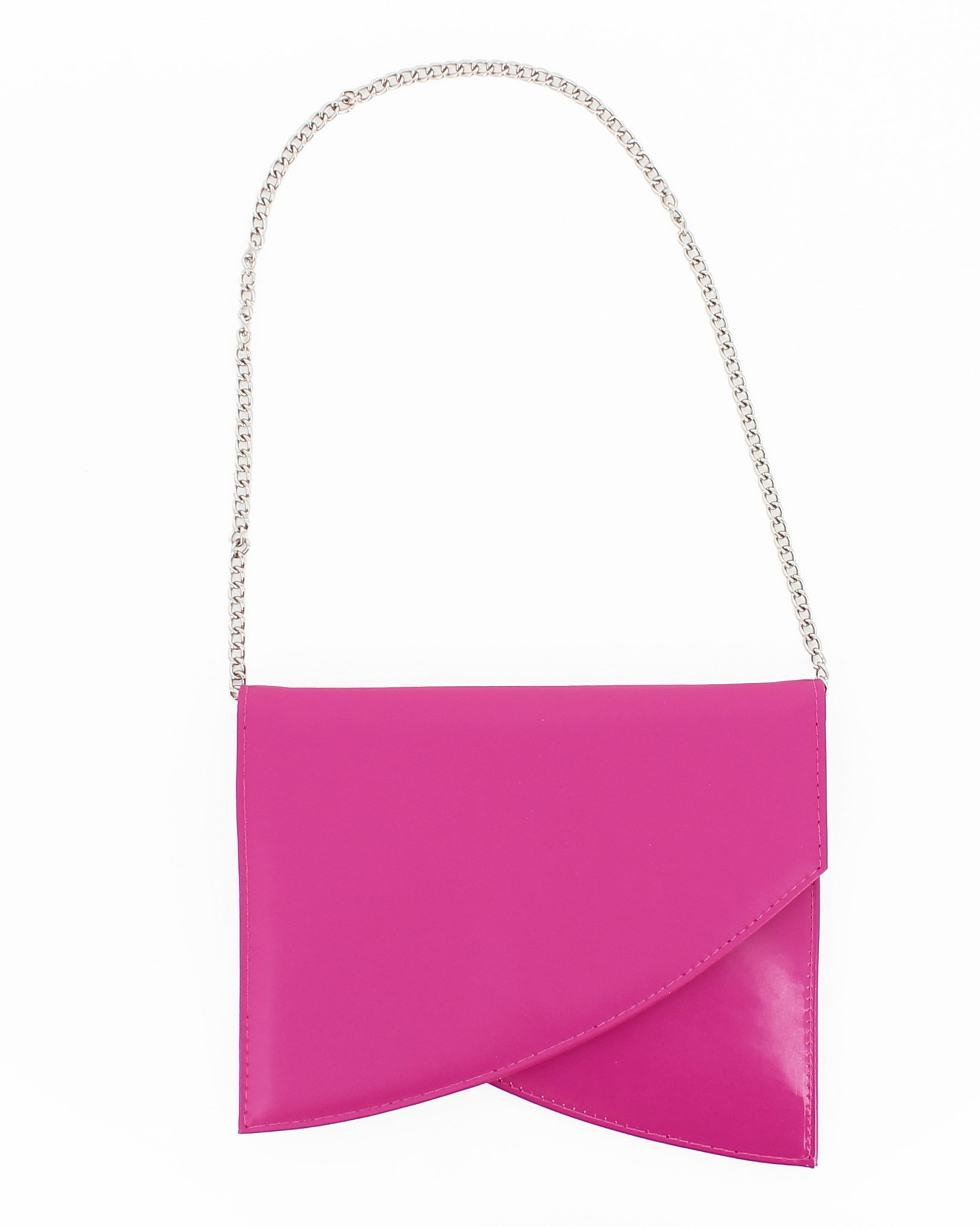 ANNES NICOLE - Pochette fucsia a punta con inserto in vernice e patta, MADE IN ITALY