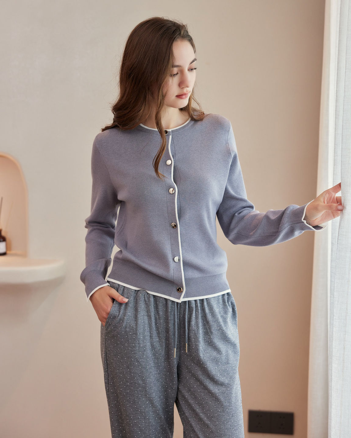 BACHATA - Cardigan manica lunga grigio e bianco con bottoni da donna