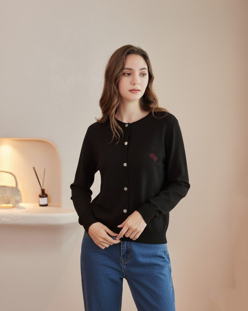 BACHATA - Cardigan manica lunga nero con bottoni da donna