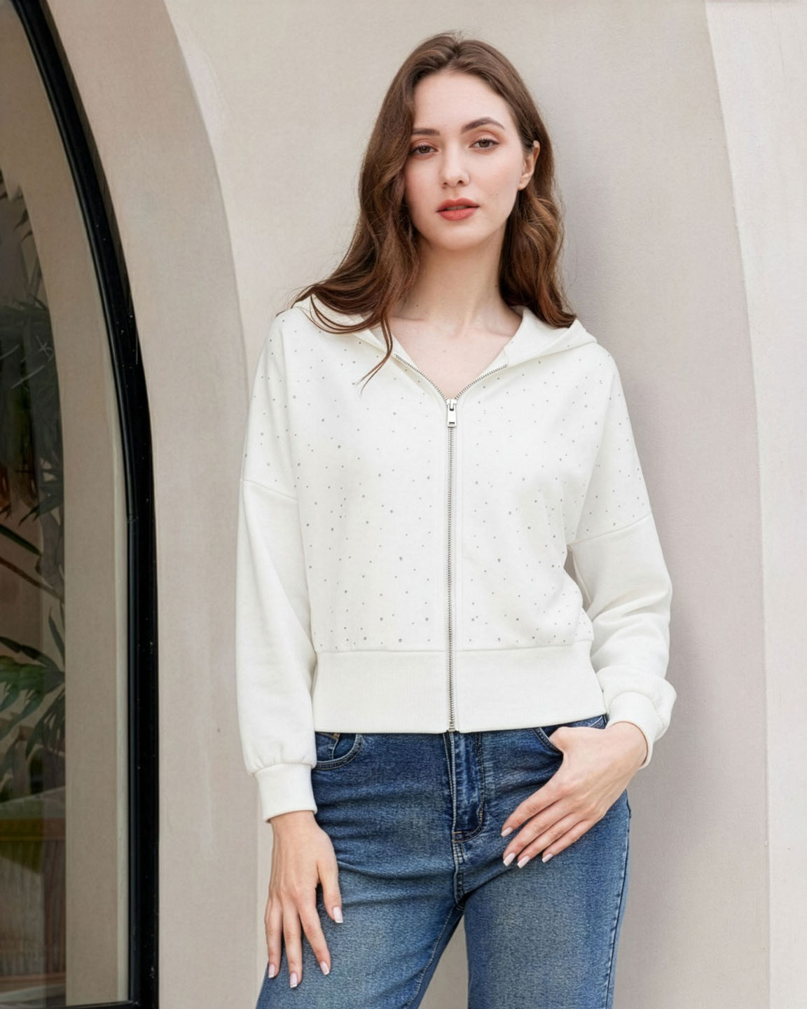 BACHATA - Felpa corta con cappuccio e maniche a pipistrello da donna zip intera bianca