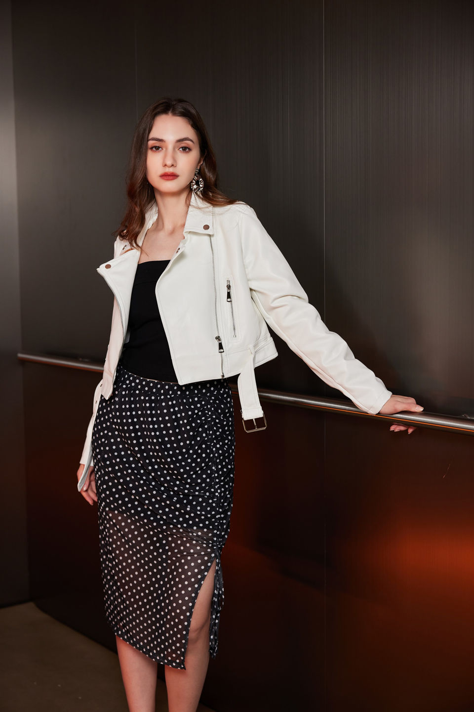 BACHATA - GIUBBINO BIKER BIANCO DA DONNA CON CINTURA