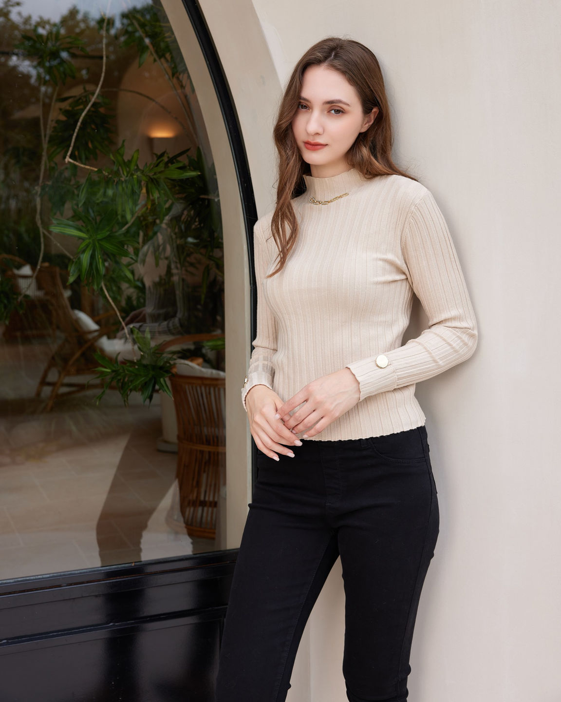 BACHATA - Maglia beige da donna a manica lunga con collo alto