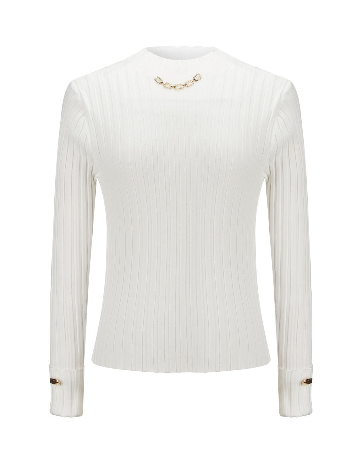 BACHATA - Maglia bianca da donna a manica lunga con collo alto