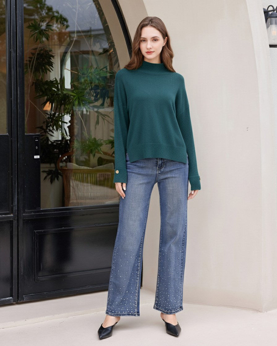BACHATA - Maglia manica lunga a lupetto ottanio da donna