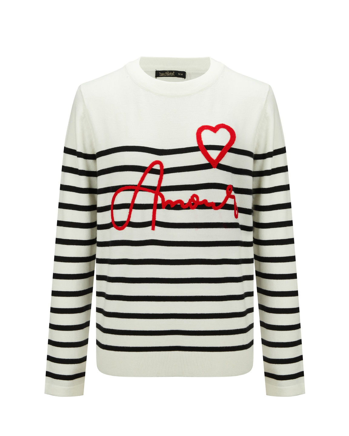 BACHATA - Maglia manica lunga bianca a righe nere con scritta Amour