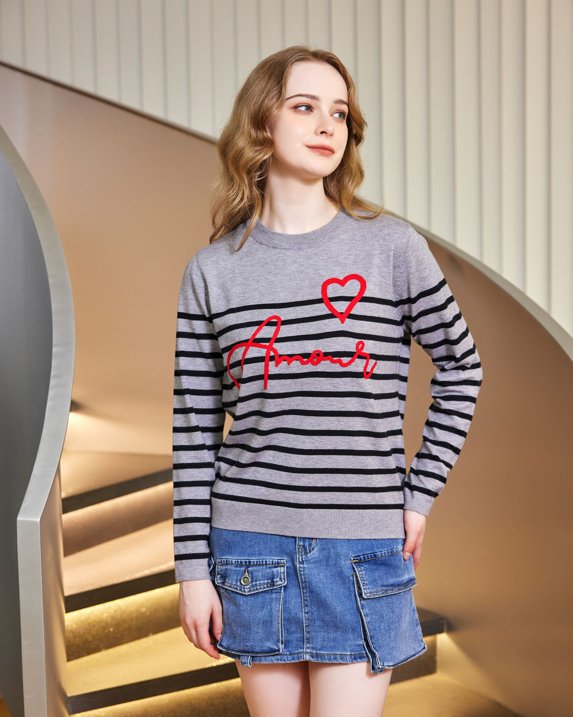 BACHATA - Maglia manica lunga grigia a righe nere con scritta Amour