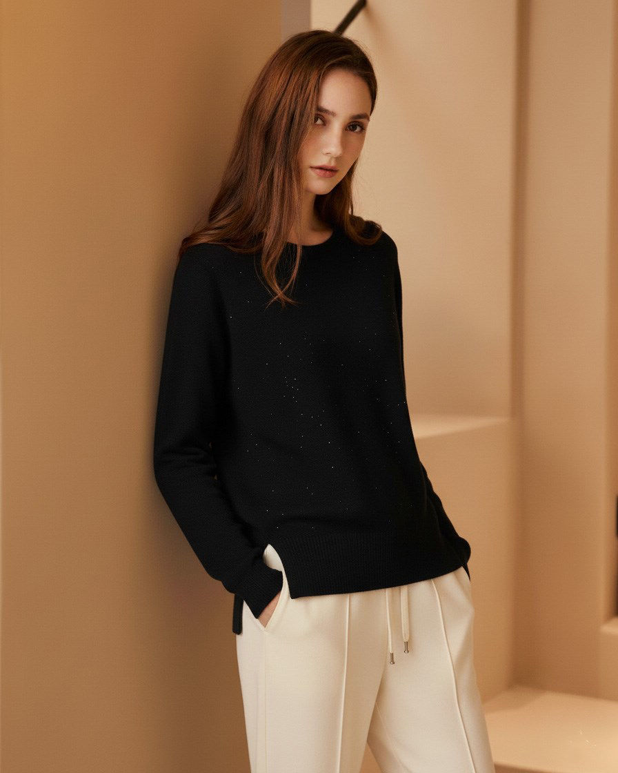 BACHATA - Maglia manica lunga nera da donna con paillettes