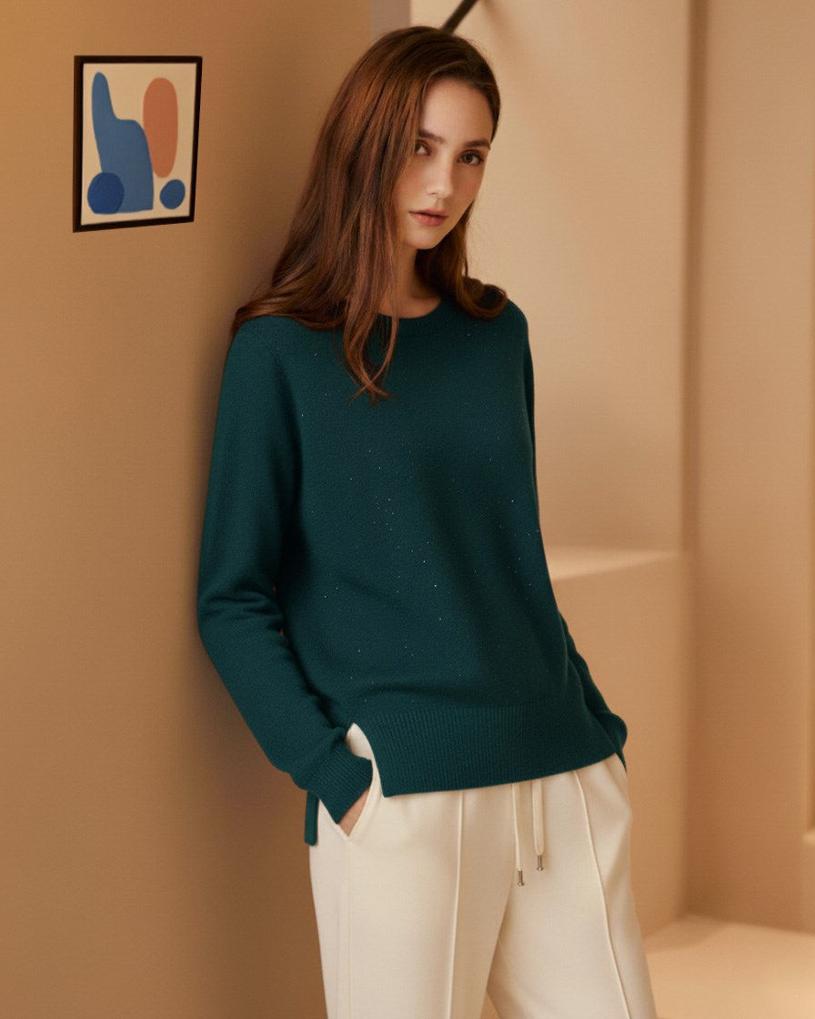 BACHATA - Maglia manica lunga ottanio da donna con paillettes
