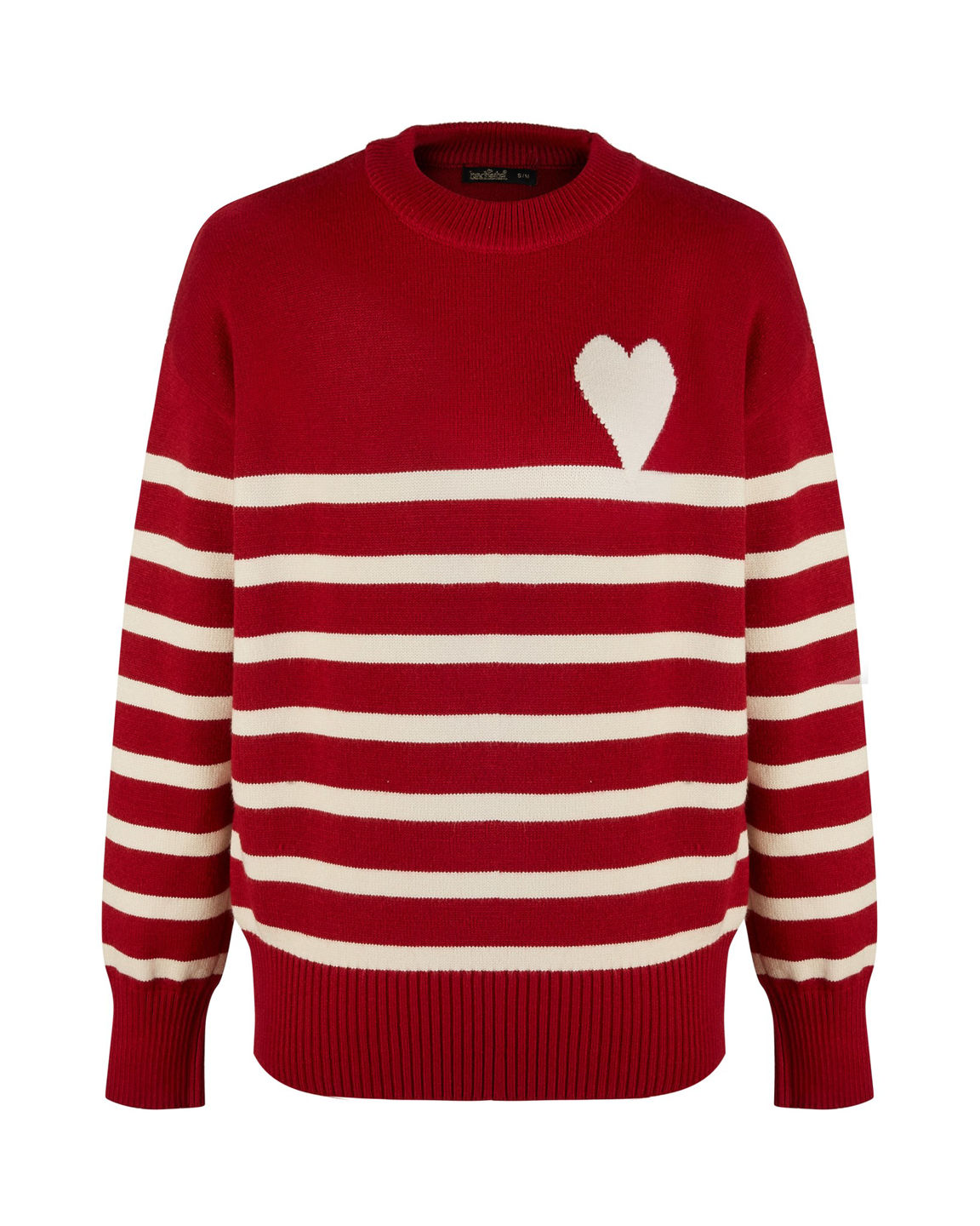 BACHATA - Maglia manica lunga rossa a righe bianche e cuore