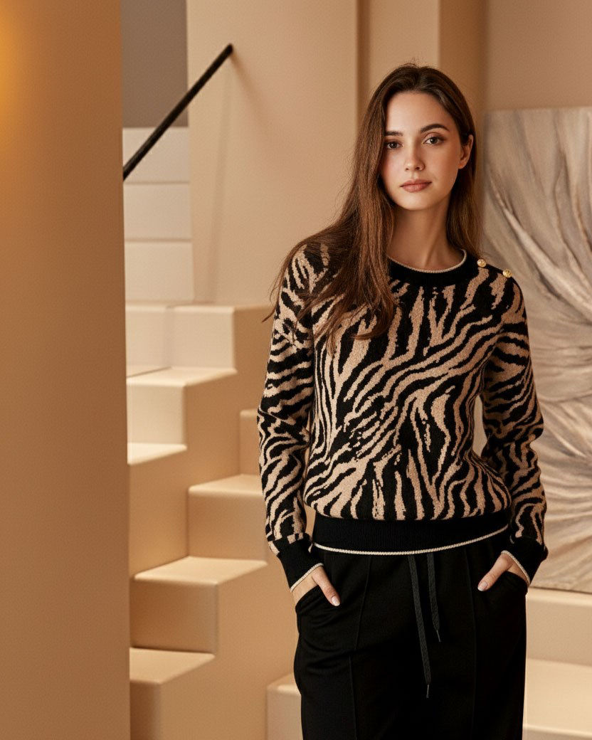 BACHATA - MAGLIA ZEBRATA MANICA LUNGA DA DONNA