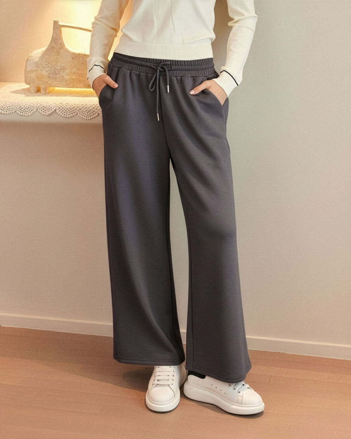 BACHATA - Pantapalazzo grigio scuro con elastico in vita