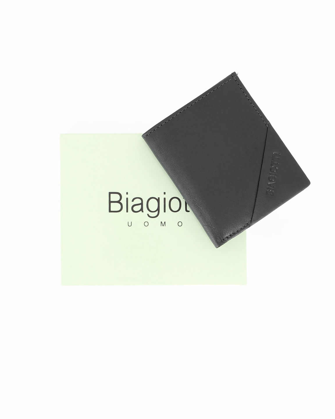 BIAGIOTTI - Portafoglio nero in VERA PELLE da uomo con ribaltina