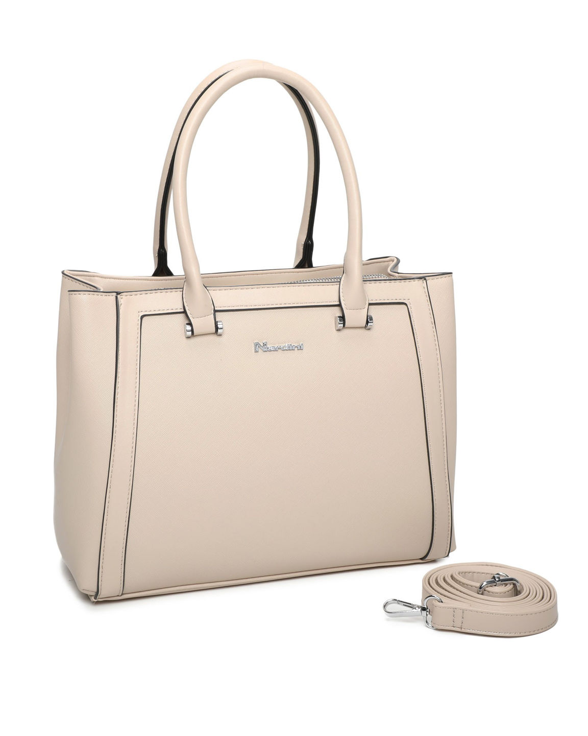 NARDINI - Borsa due manici beige con tasca posteriore e tre scomparti interni, tracolla removibile