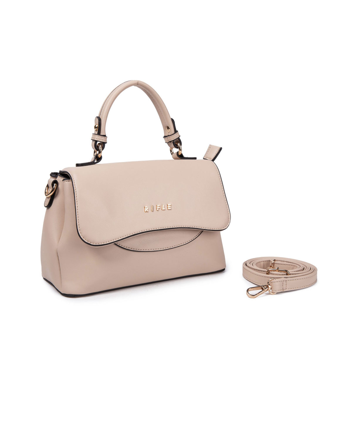RIFLE - Borsa a mano beige con patta, tasca posteriore e tre scomparti interni, tracolla removibile
