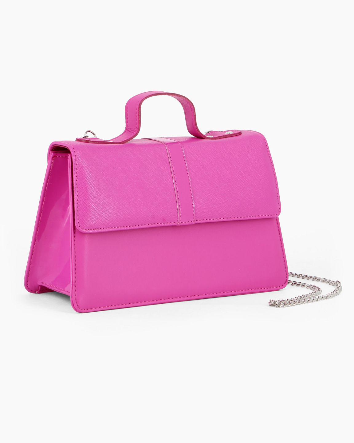 TATOO - Borsetta carne con manico, patta in saffiano e profili in vernice - MADE IN ITALY