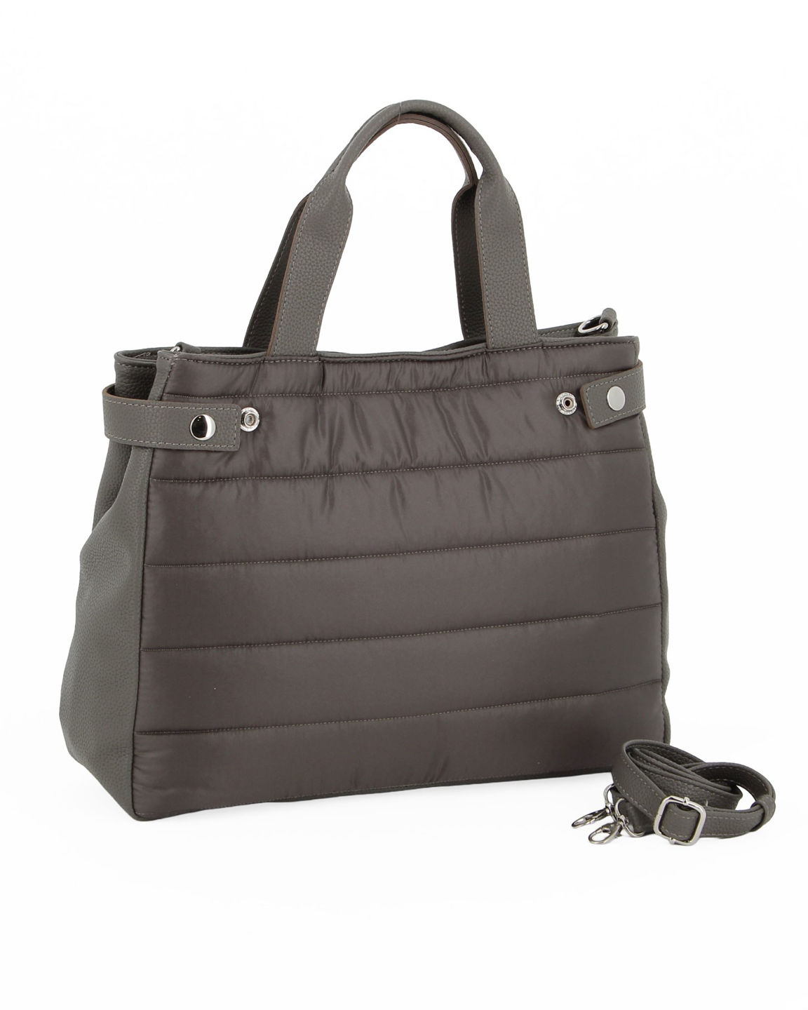 TATOO - Borsa due manici nera con fasce orizzontali imbottite e tracolla removibile, MADE IN ITALY