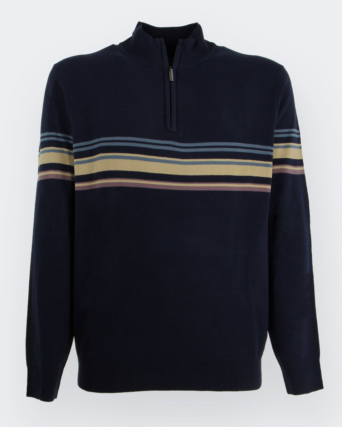 BREZZA DI MARE - MAGLIA MANICA LUNGA DA UOMO BLU MEZZA ZIP RIGA CENTRALE