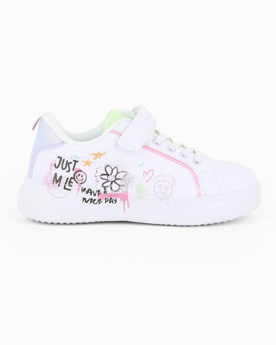 CANGURO - Sneakers bianca da bambina con inserti glitter e strappo, numerata 31/36