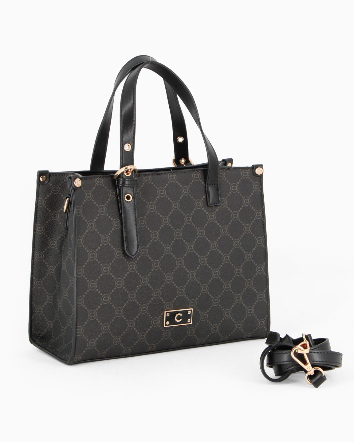 CARRERA - Borsa a du manici logata nera, tracola removibile