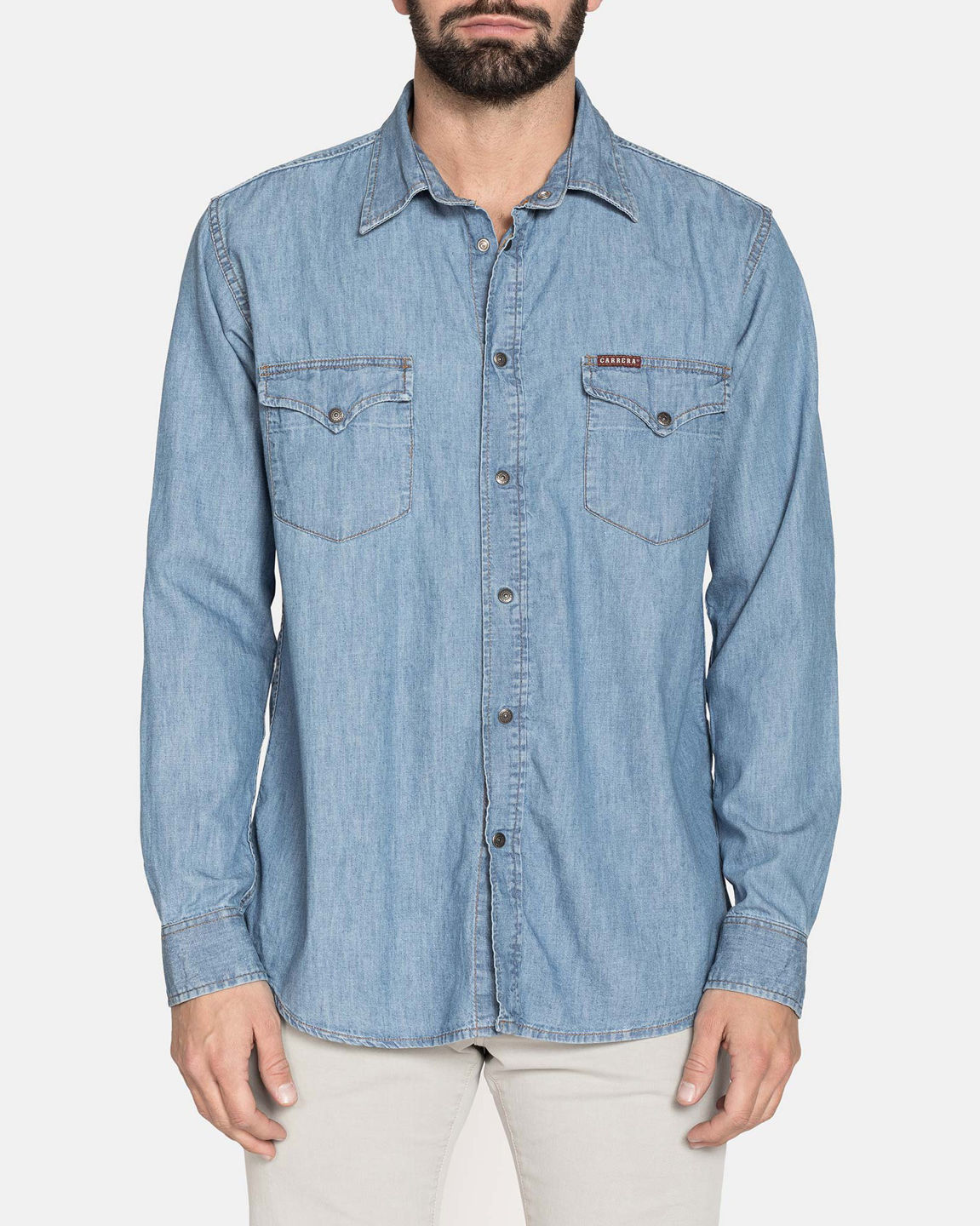 CARRERA - CAMICIA JEANS LAVAGGIO CHIARO COLLO CLASSICO MANICA LUNGA 2 TASCHINI CON BOTTONCINI