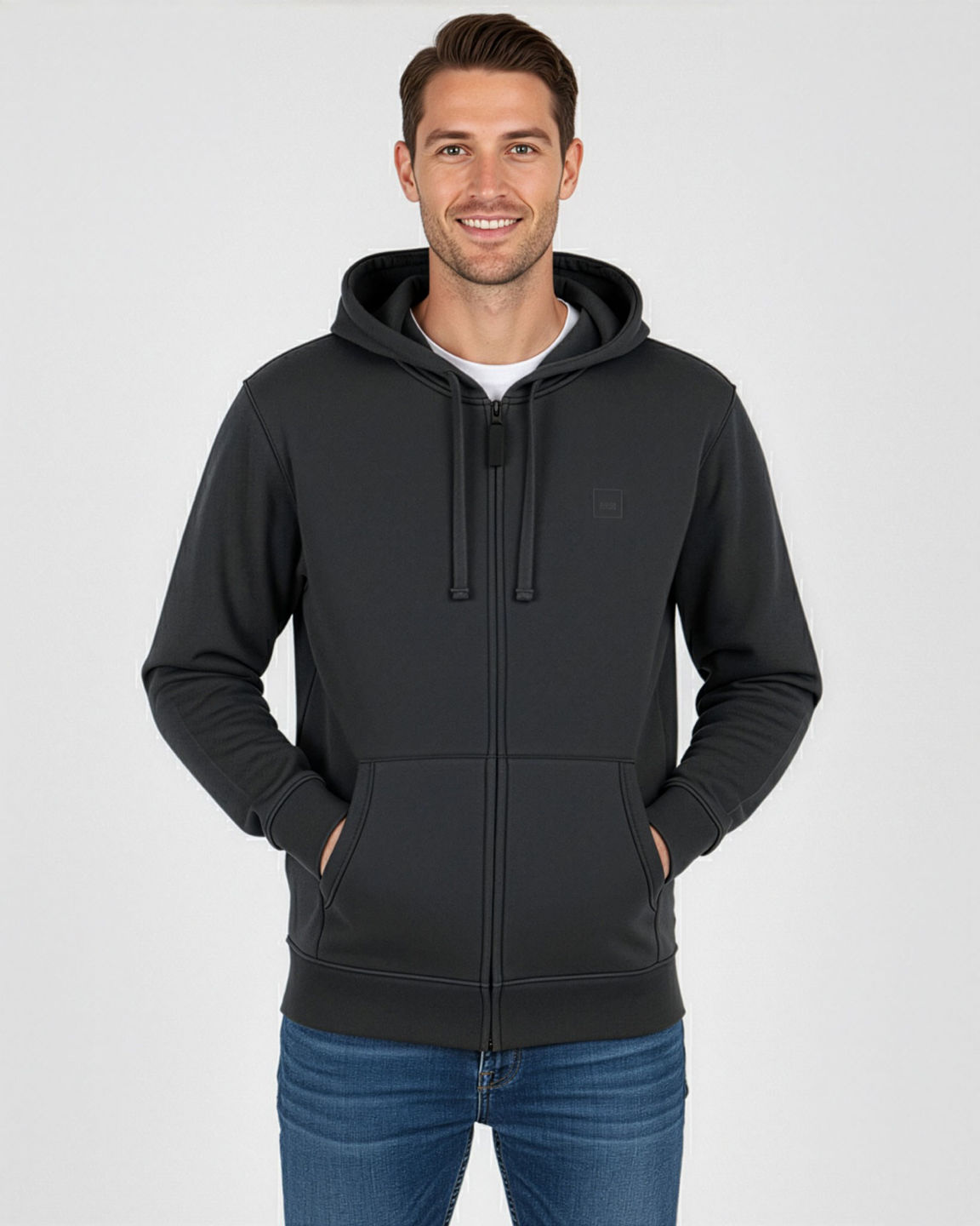 CARRERA - FELPA CON ZIP INTERA E CAPPUCCIO GRIGIO SCURO DA UOMO