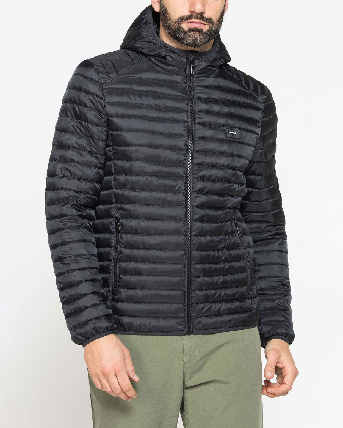 CARRERA - Giubbino 100 grammi con cappuccio in tessuto ripstop nero da uomo