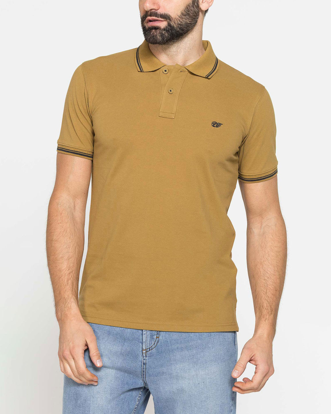 CARRERA - Polo manica corta basic in piquet di cotone ocra con bordino a contrasto