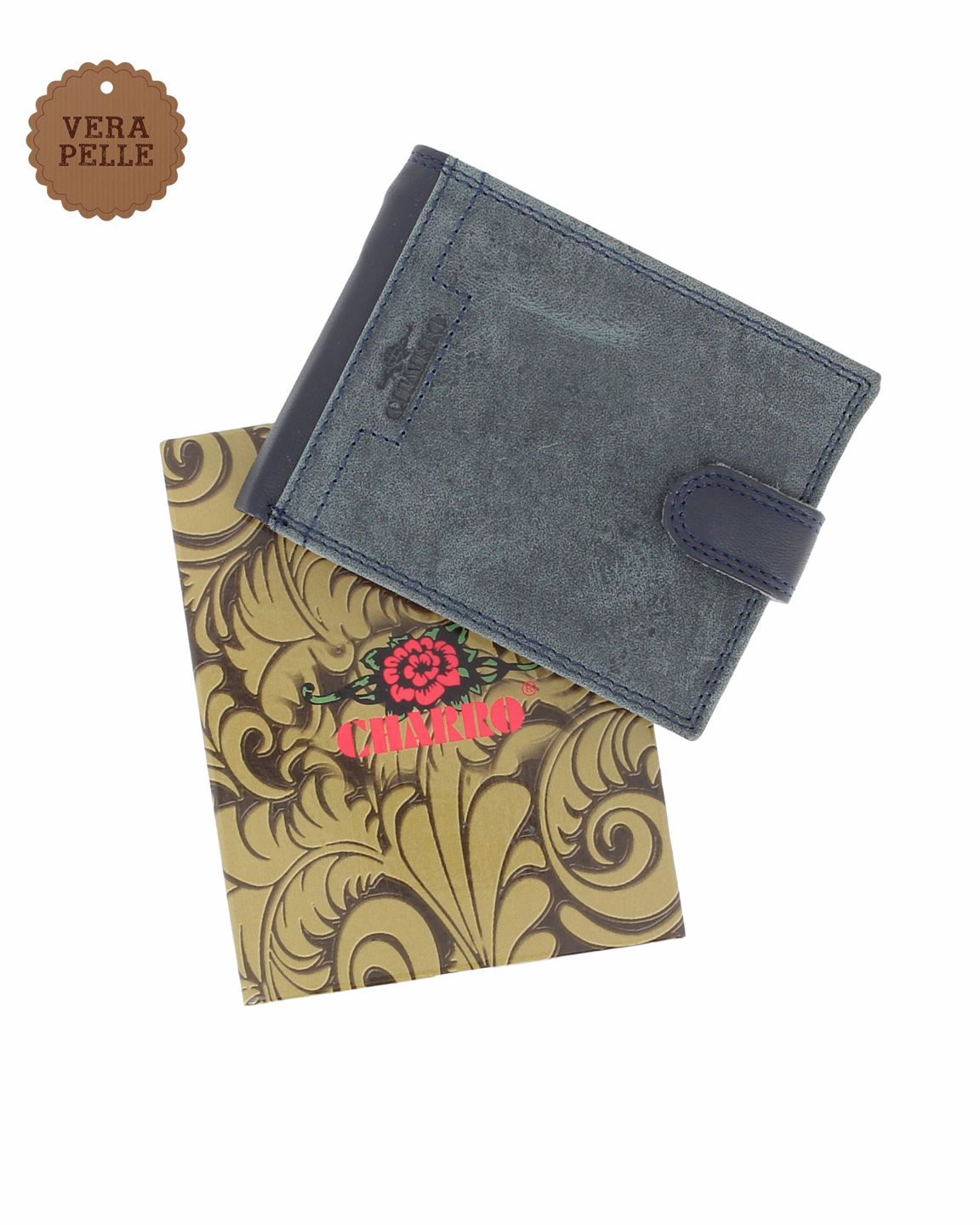 CHARRO - Portafoglio blu da uomo in VERA PELLE con pattina e ribaltina interna