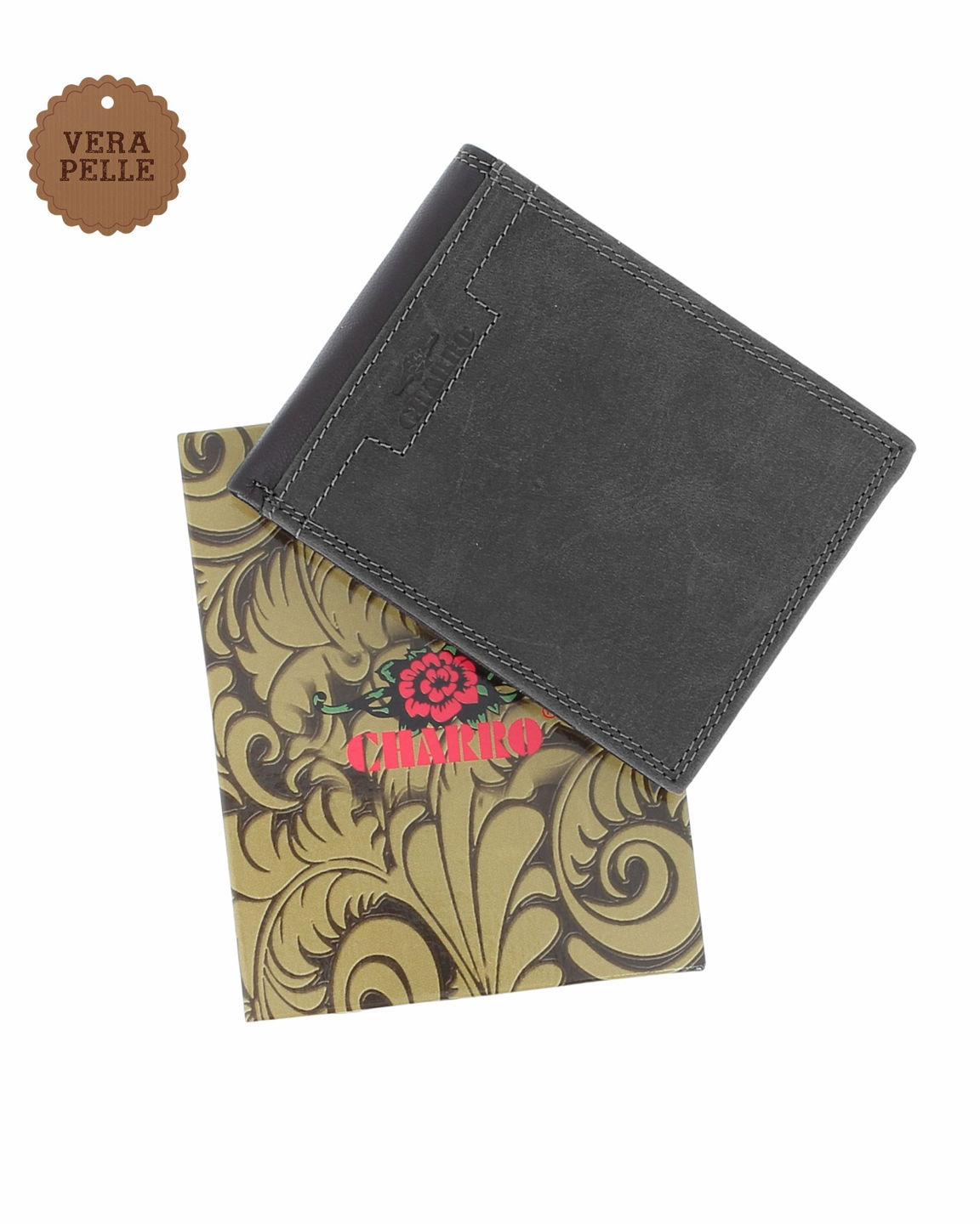 CHARRO - Portafoglio nero da uomo in VERA PELLE con ribaltina interna