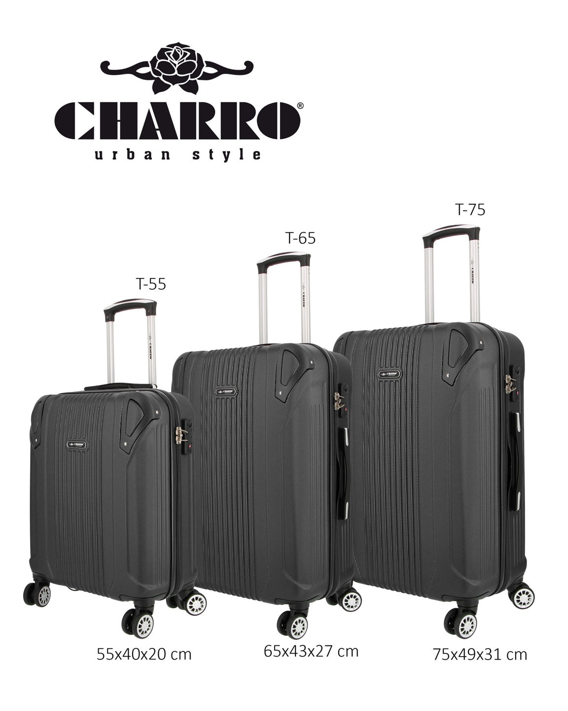 -T75: 75 x 49 x 31 cm (includono ruote, maniglie, tasche laterali, etc.) volume 99L, peso 4,0kg