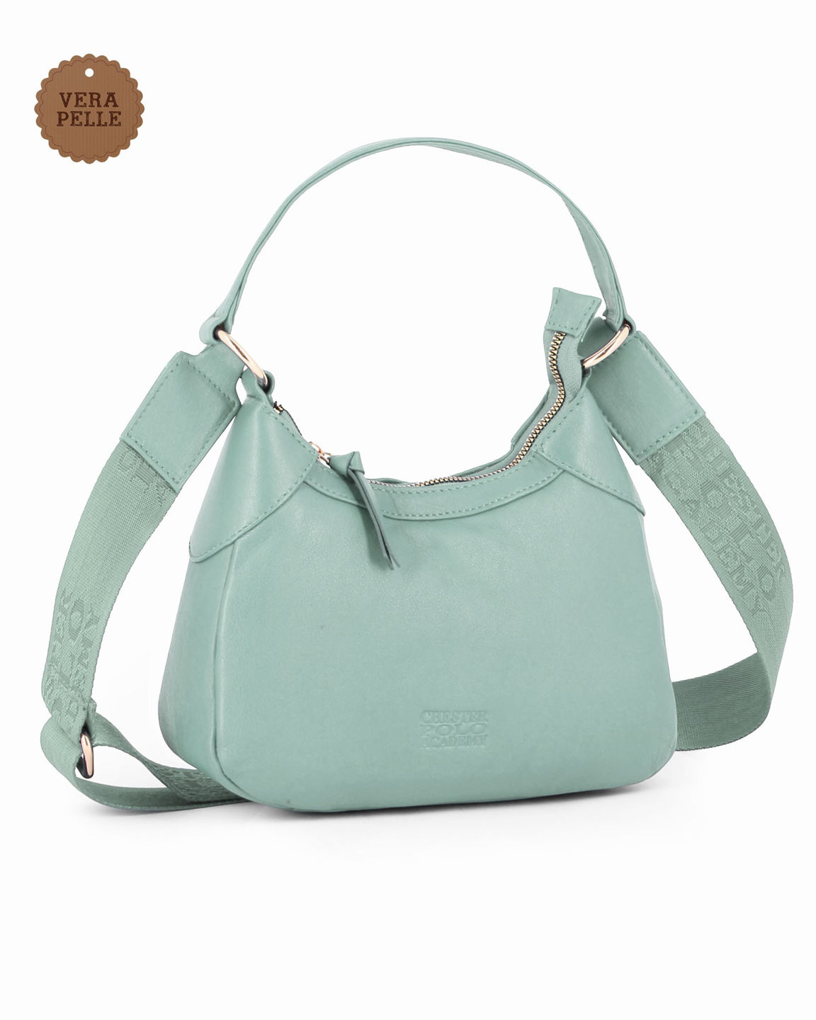 CHESTER POLO ACADEMY - Minibag verde acqua in VERA PELLE con tracolla nastro loggata