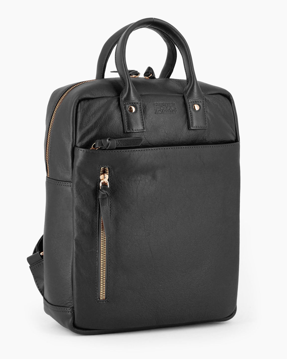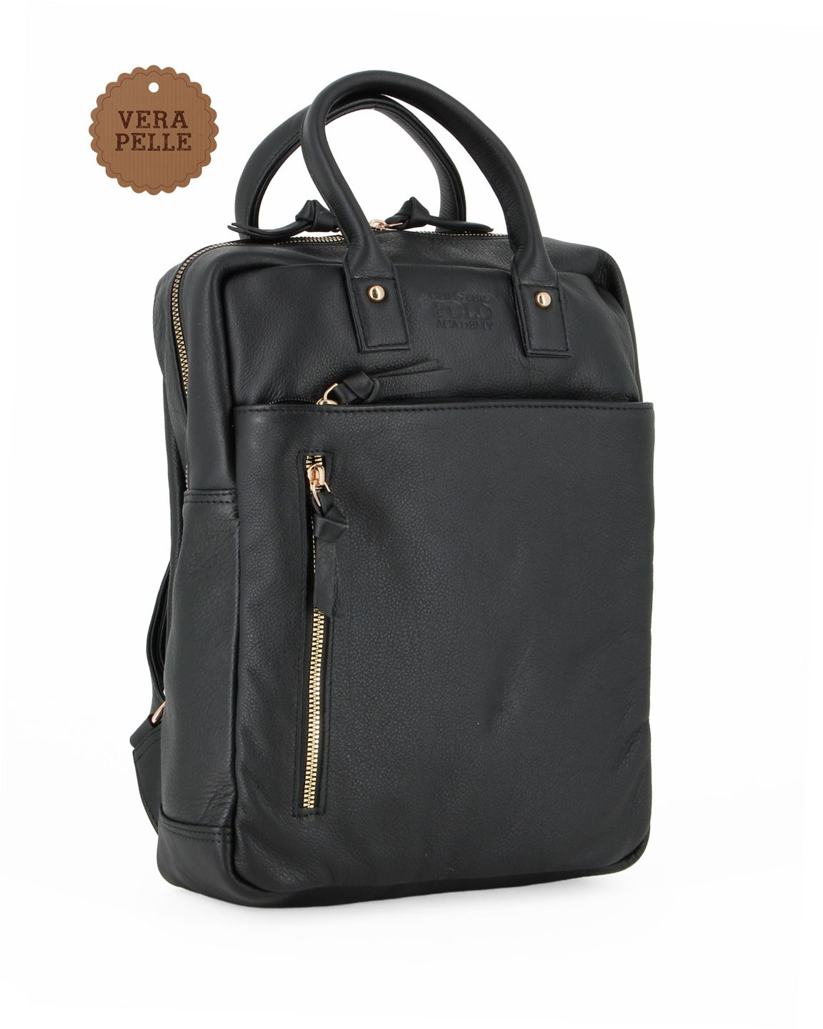 CHESTER POLO ACADEMY - Zaino nero in VERA PELLE con due manici e doppia tasca frontale