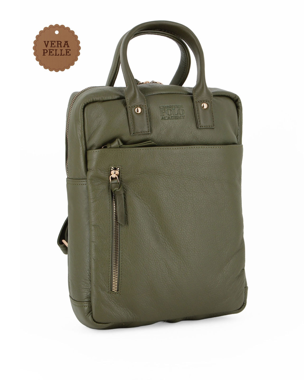 CHESTER POLO ACADEMY - Zaino verde in VERA PELLE con due manici e doppia tasca frontale