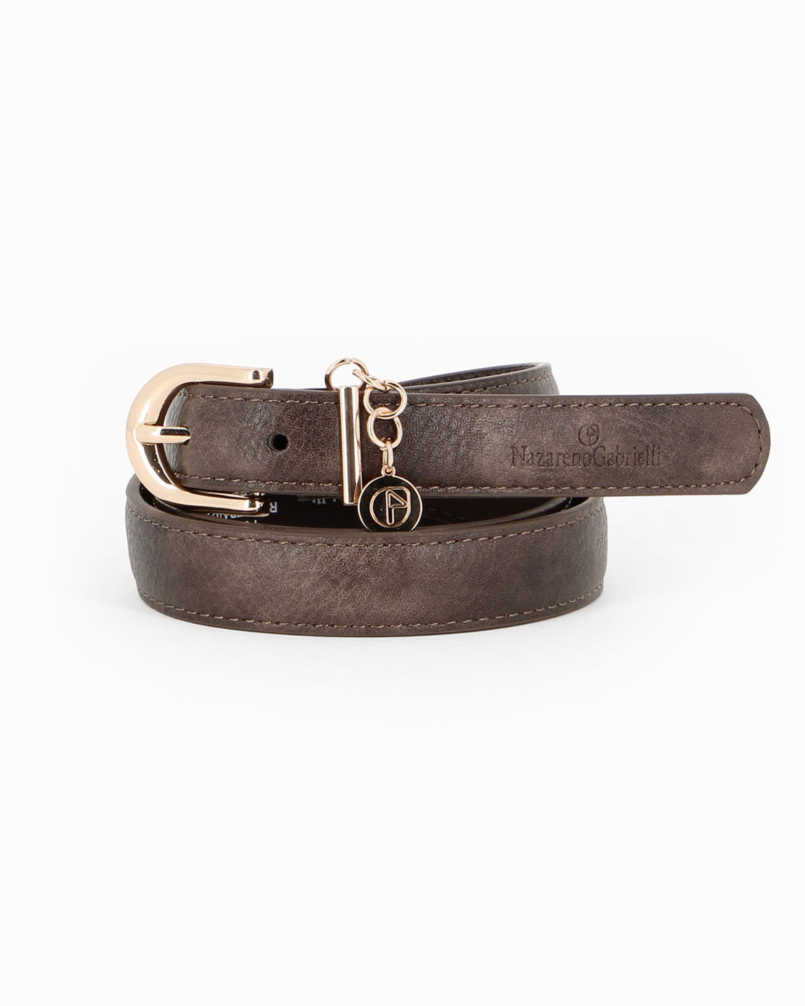 NAZARENO GABRIELLI - Cinta tabacco da donna in VERA PELLE con ciondolo loggato