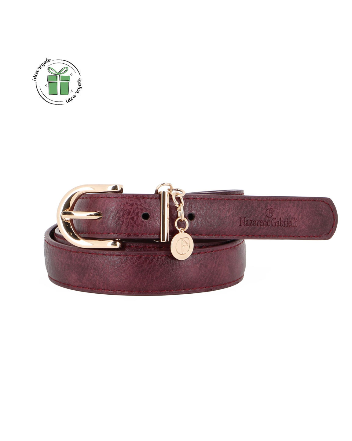 NAZARENO GABRIELLI - Cinta tabacco da donna in VERA PELLE con ciondolo loggato