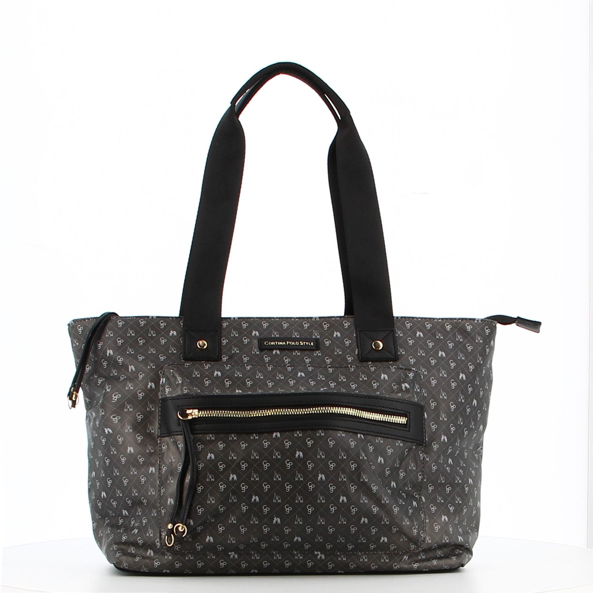 CORTINA POLO STYLE - Borsa shopping nera loggata con zip frontale orizzontale