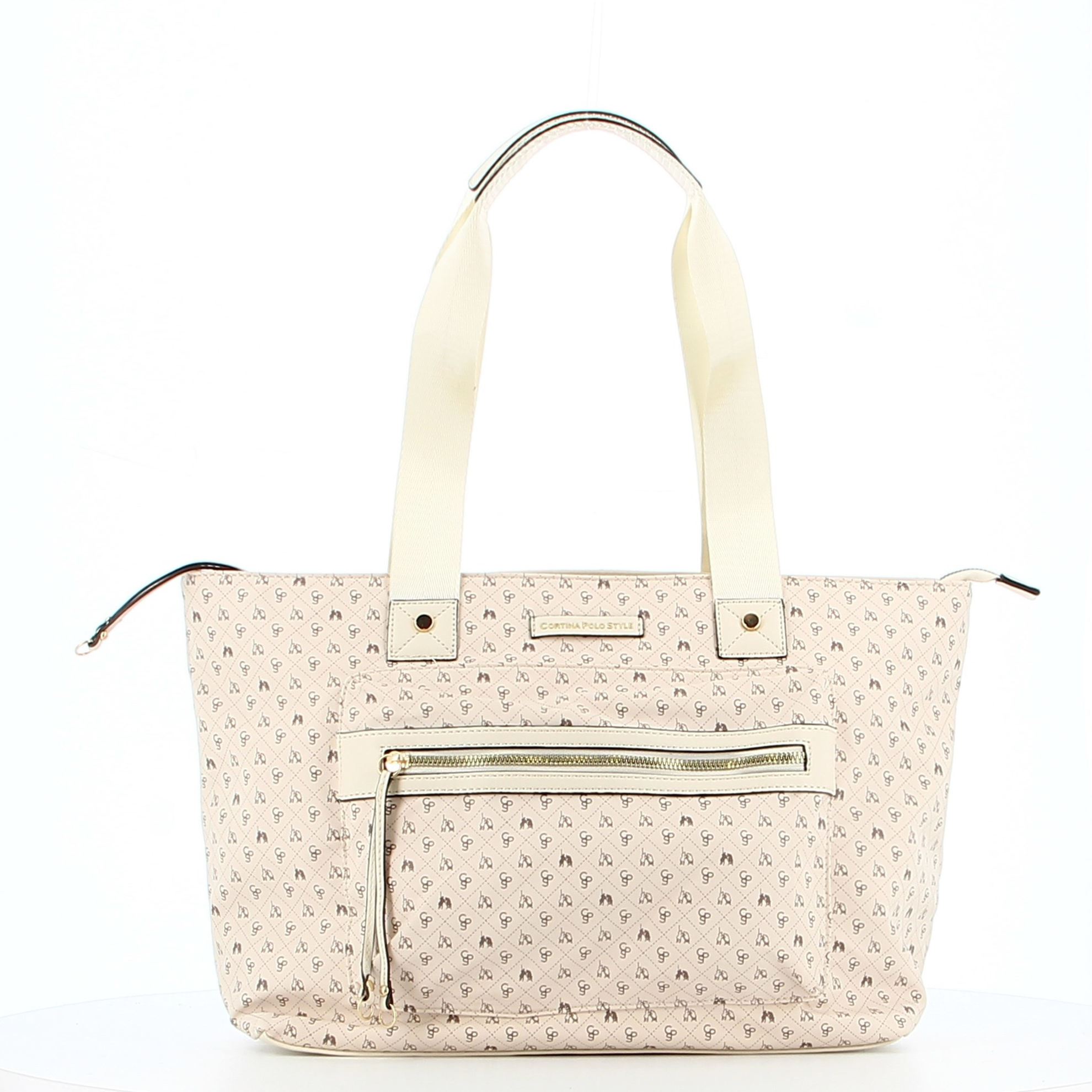 CORTINA POLO STYLE - Borsa shopping beige loggata con zip frontale orizzontale