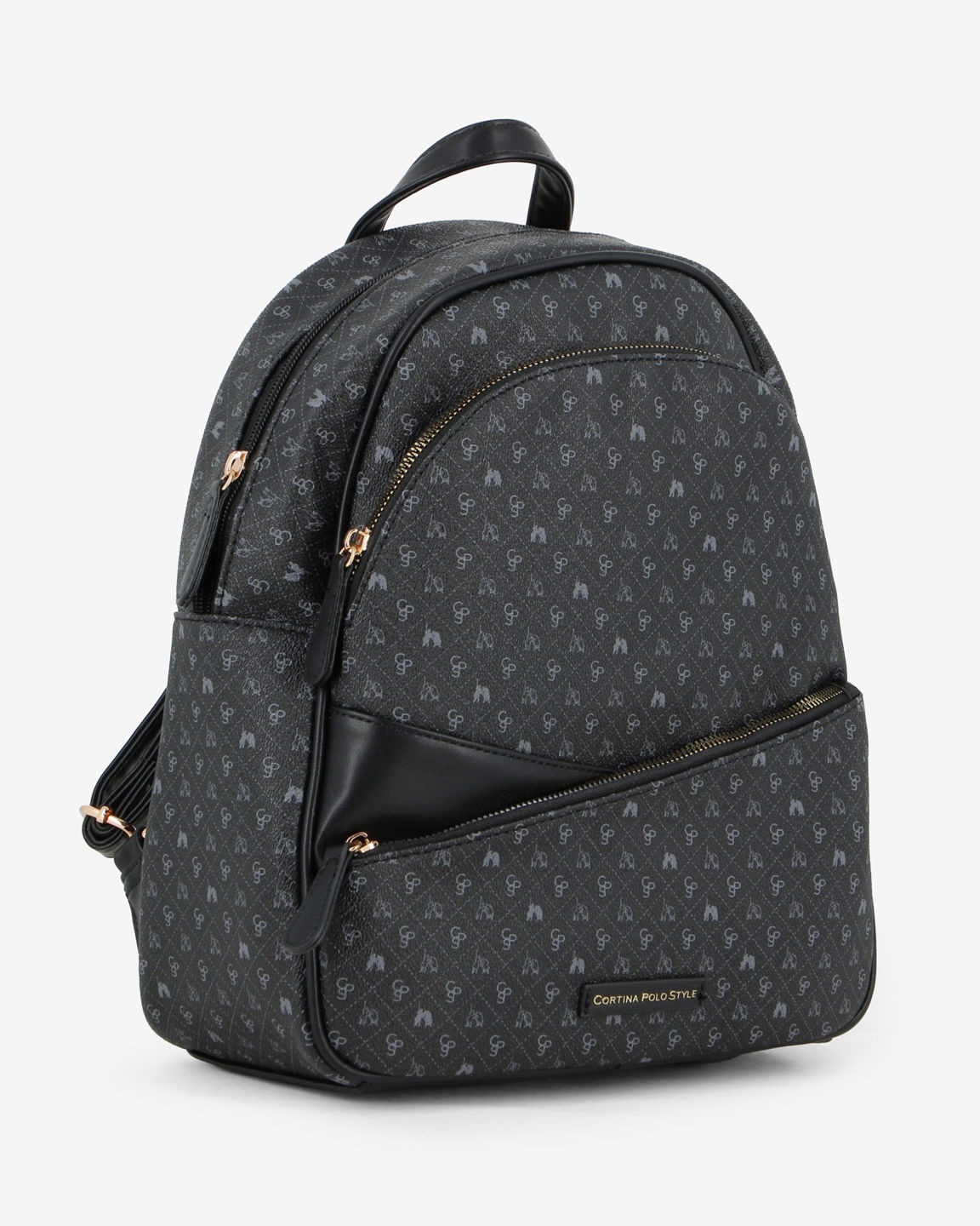 CORTINA POLO STYLE - Zaino nero loggato con doppia tasca frontale