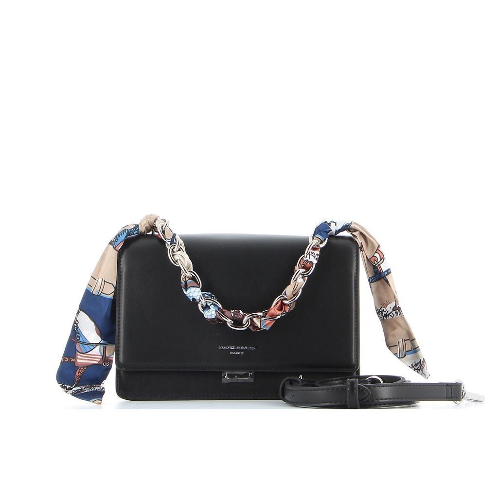 DAVID JONES - Borsa a mano/ tracolla rettangolare con patta e manico catena con foulard e tracolla rimovibile