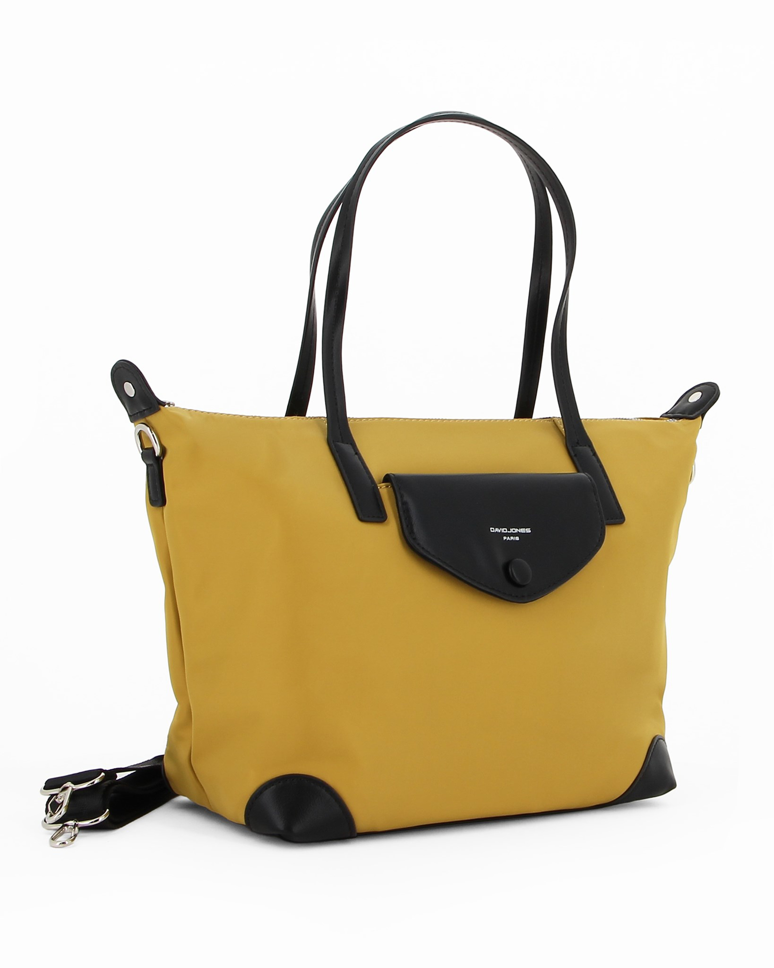 Taschino frontale con patta a contrasto e chiusura a scatto