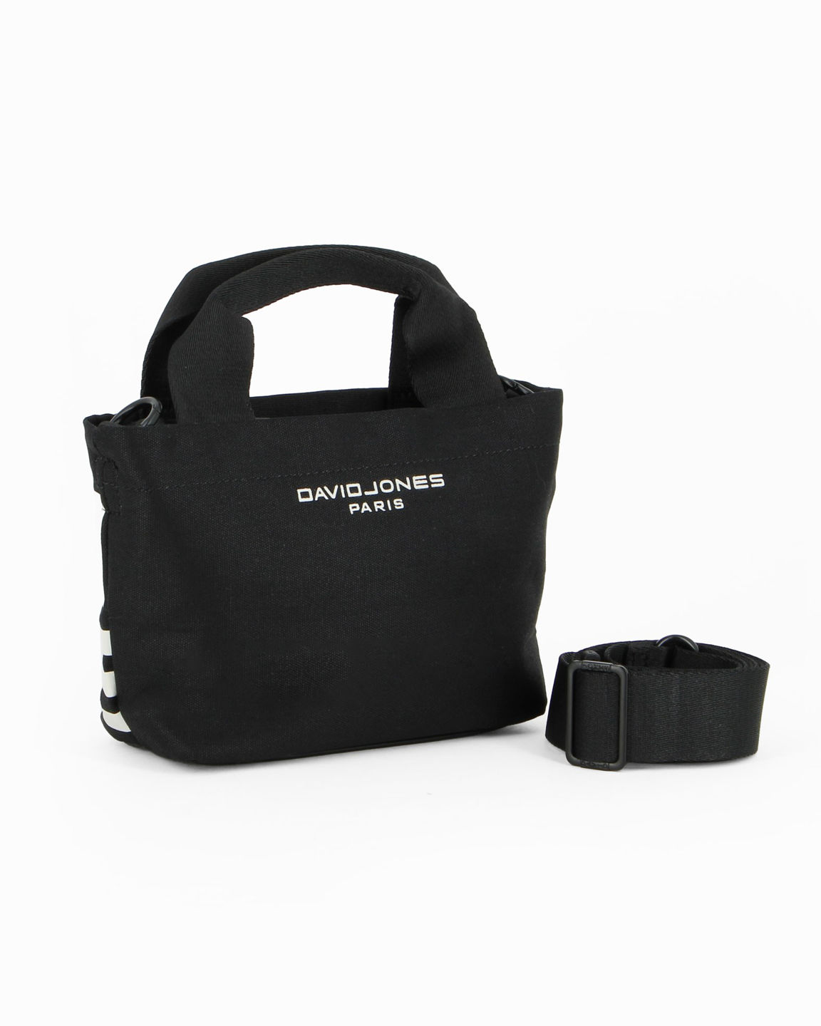 DAVID JONES - Minibag a due manici nera con dettaglio scritte, tracolla regolabile