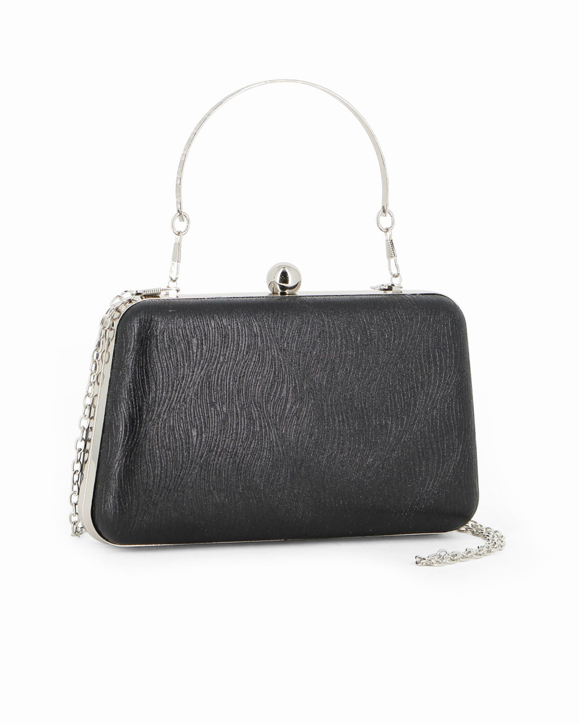 DIVAS - Clutch nera rigida effetto ondulato con manico e pomello