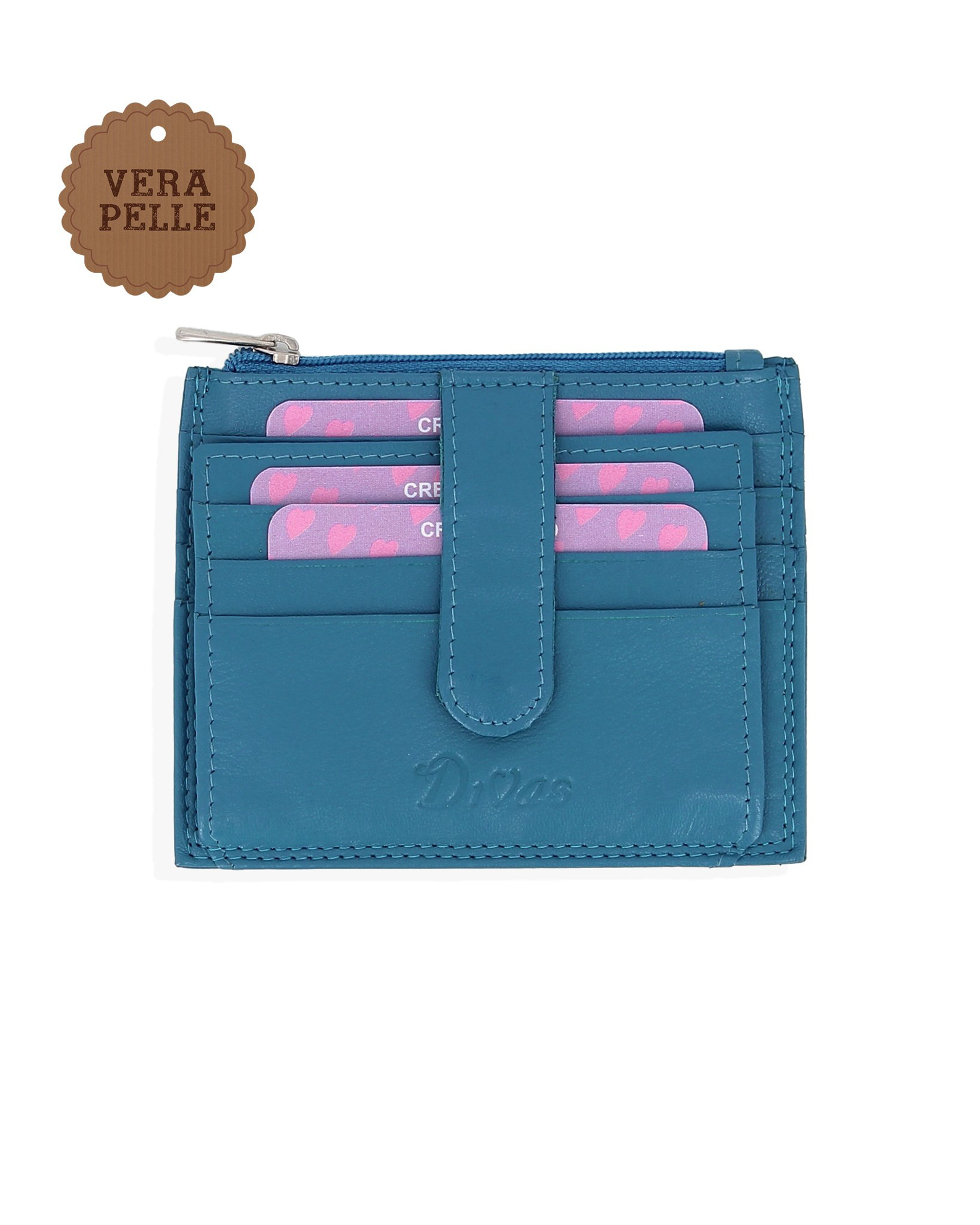 DIVAS - Portacarte blu in VERA PELLE con ribaltina e tasca portascpicci