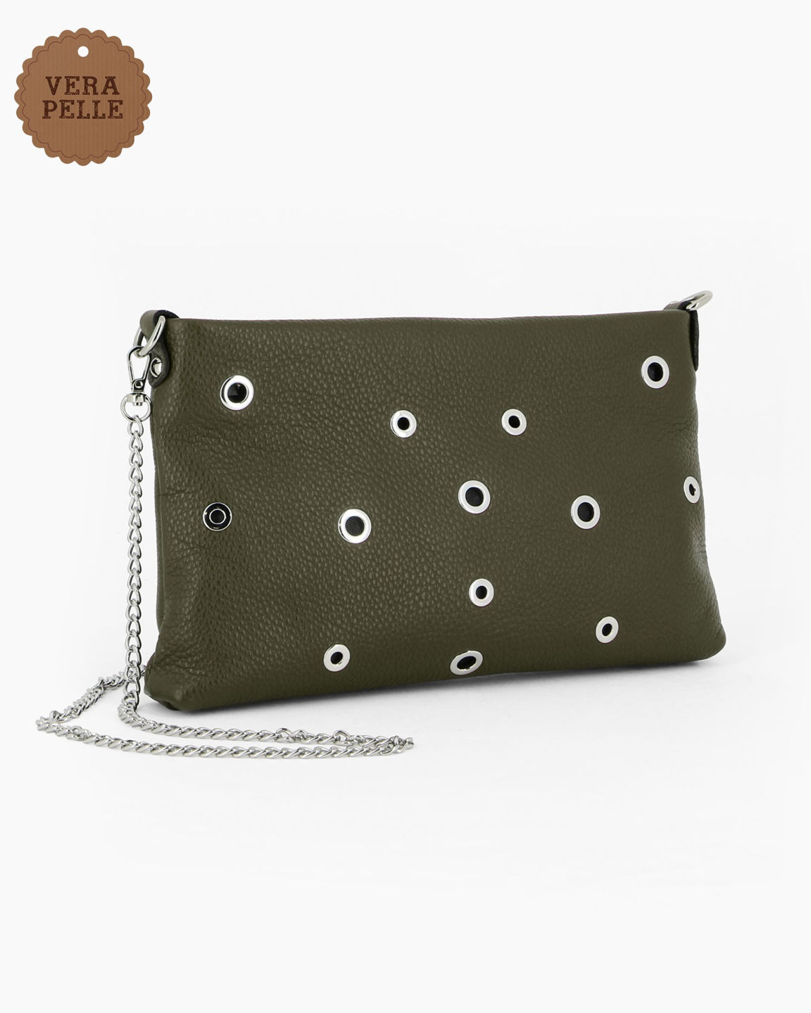 DIVAS - Tracolla verde in VERA PELLE con occhielli