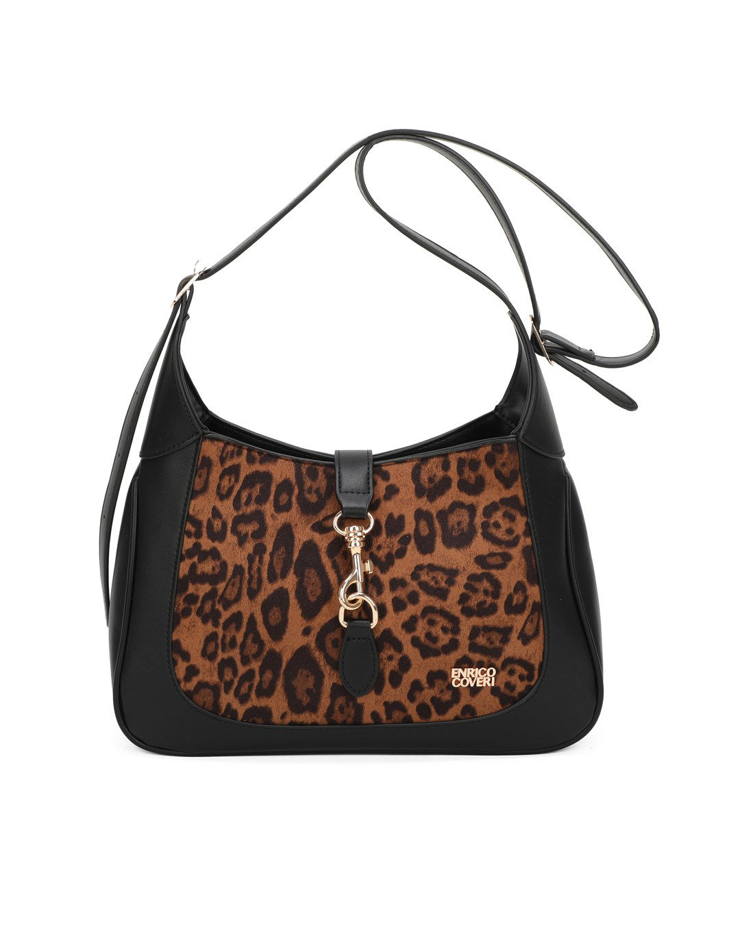 ENRICO COVERI - Borsa a spalla leopardata con pattina con moschettone, prolunga manico removibile