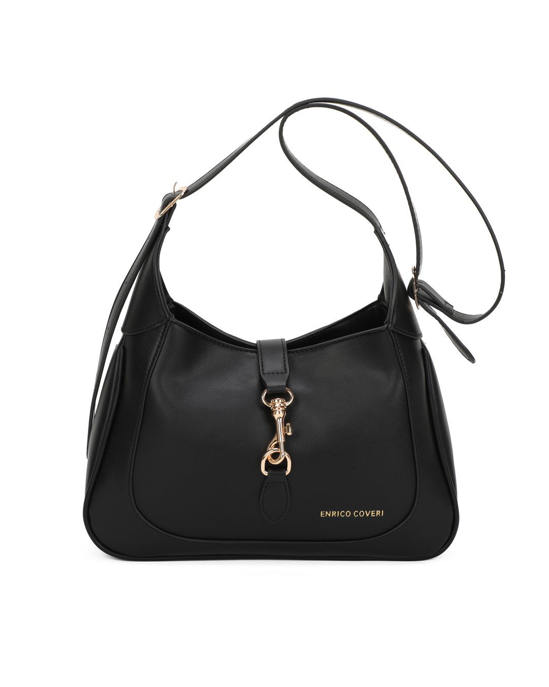 ENRICO COVERI - Borsa a spalla nera con pattina con moschettone, prolunga manico removibile
