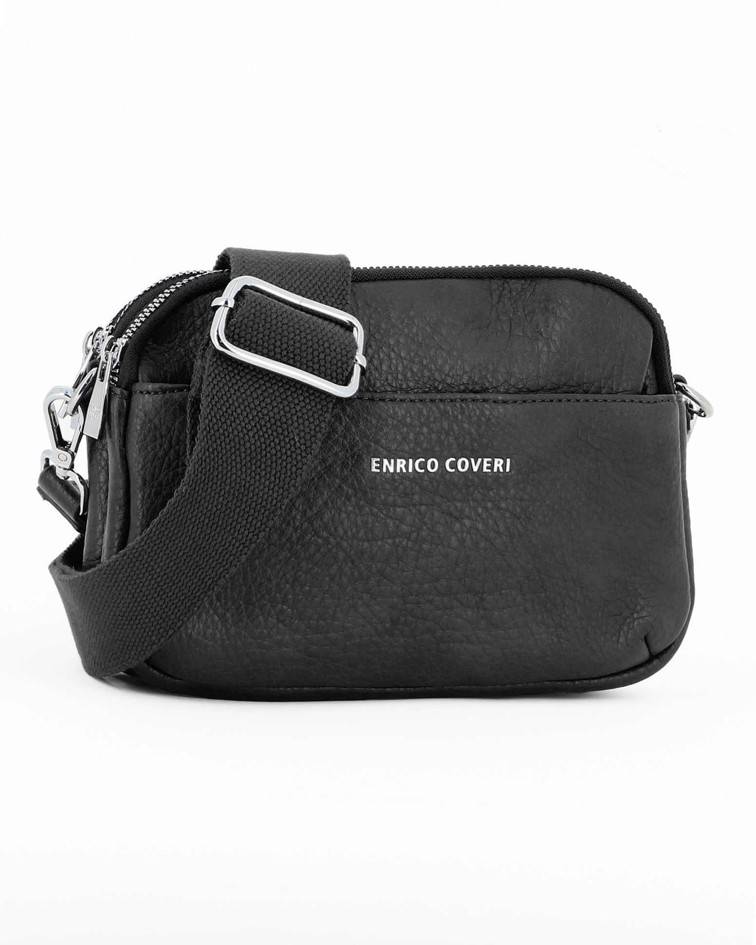 ENRICO COVERI - Pochette nera con tre scomparti principali, tasca frontale e tracolla removibile